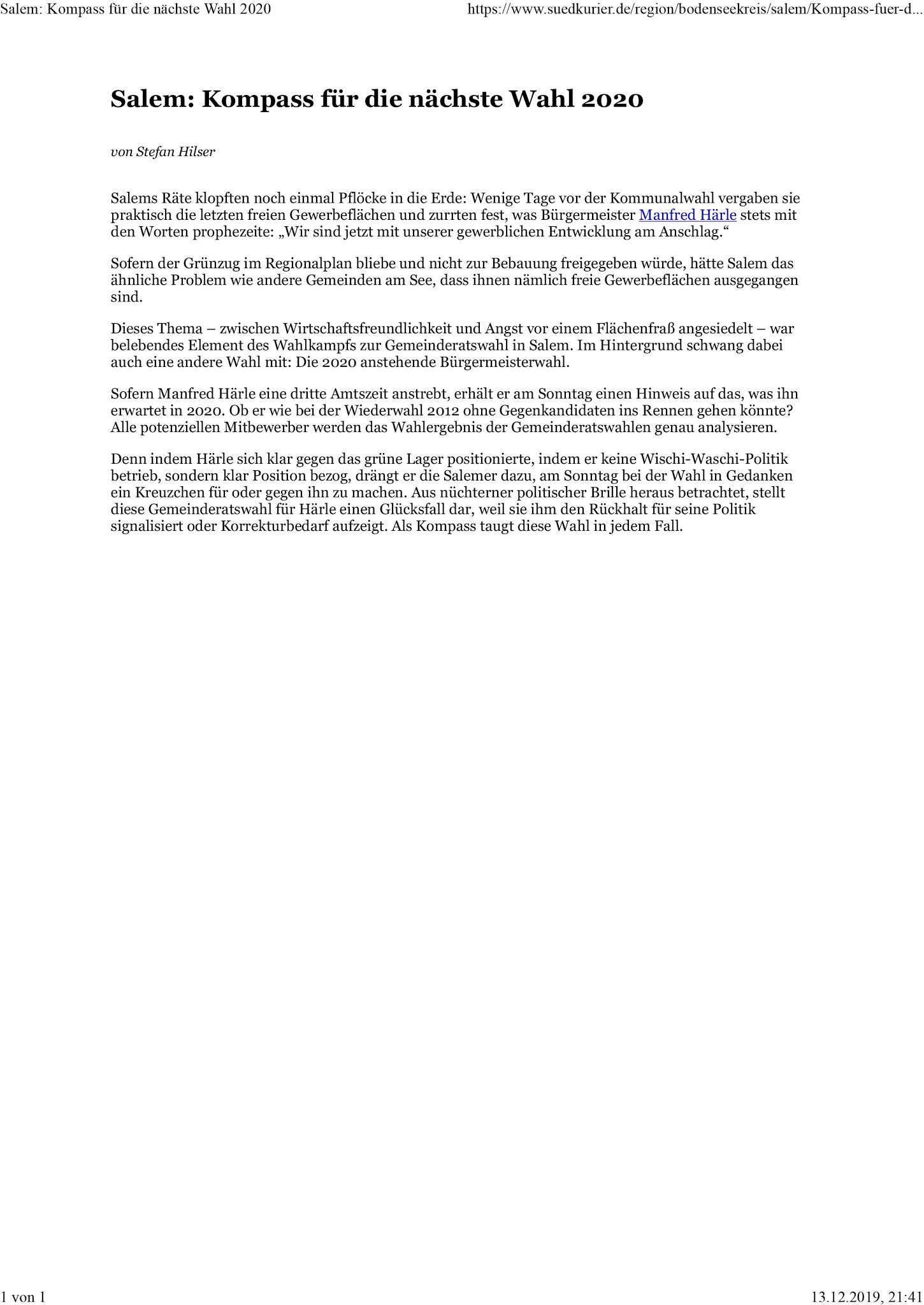 Mindestens eine Behauptung im Südkurier-Artikel schrappt haarscharf an der Unwahrheit vorbei. Das Thema „Ausweitung des Salemer Gewerbegebiets“ wurde (von den Referenten) nicht „eher unter wirtschaftlichen Aspekten beleuchtet“, sondern ausschließlich. Als gäbe es die gesamte Klimaproblematik und –diskussion gar nicht!